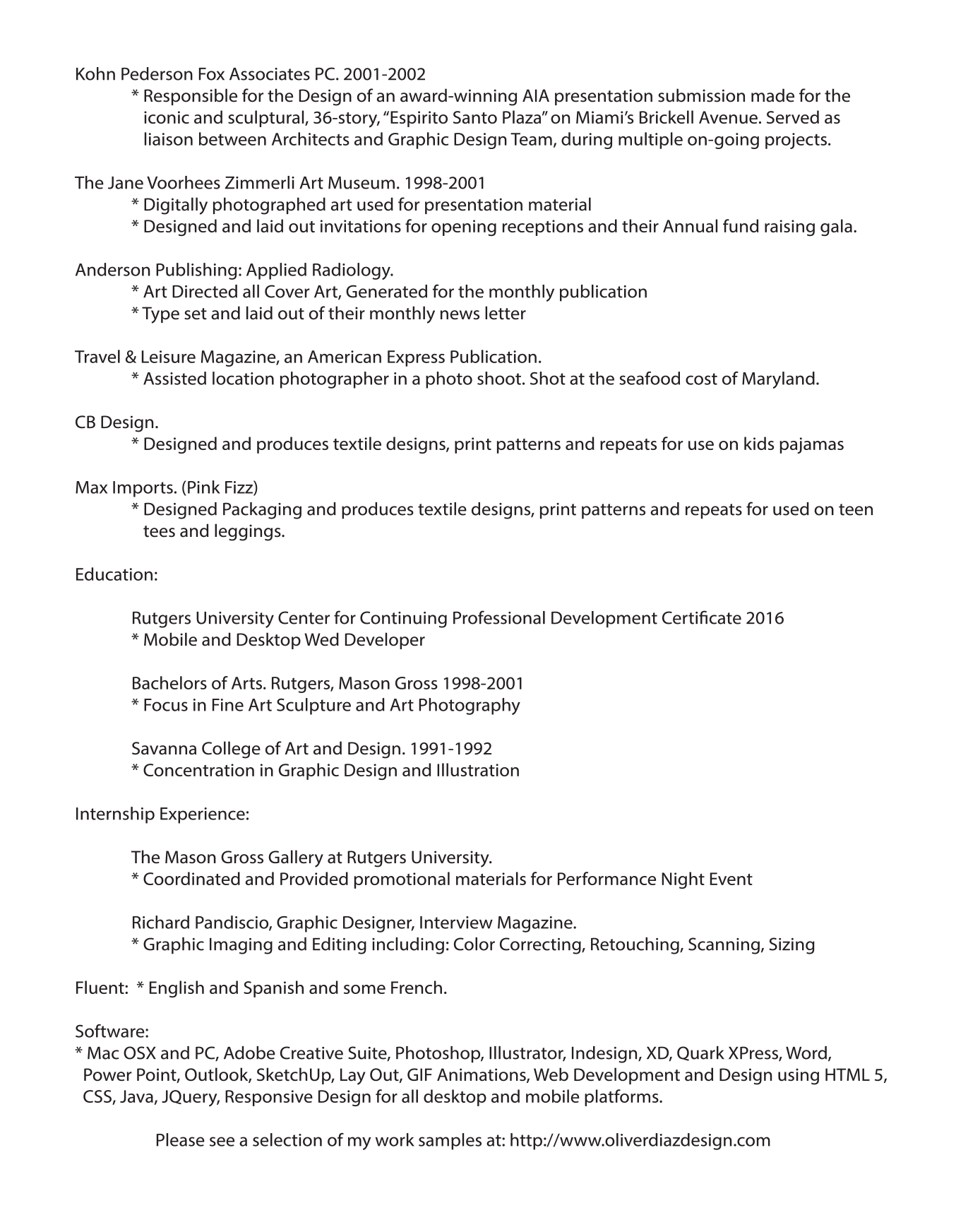 Oliver Diaz Design home Oliver Diaz resume E-mail 848-333-4919